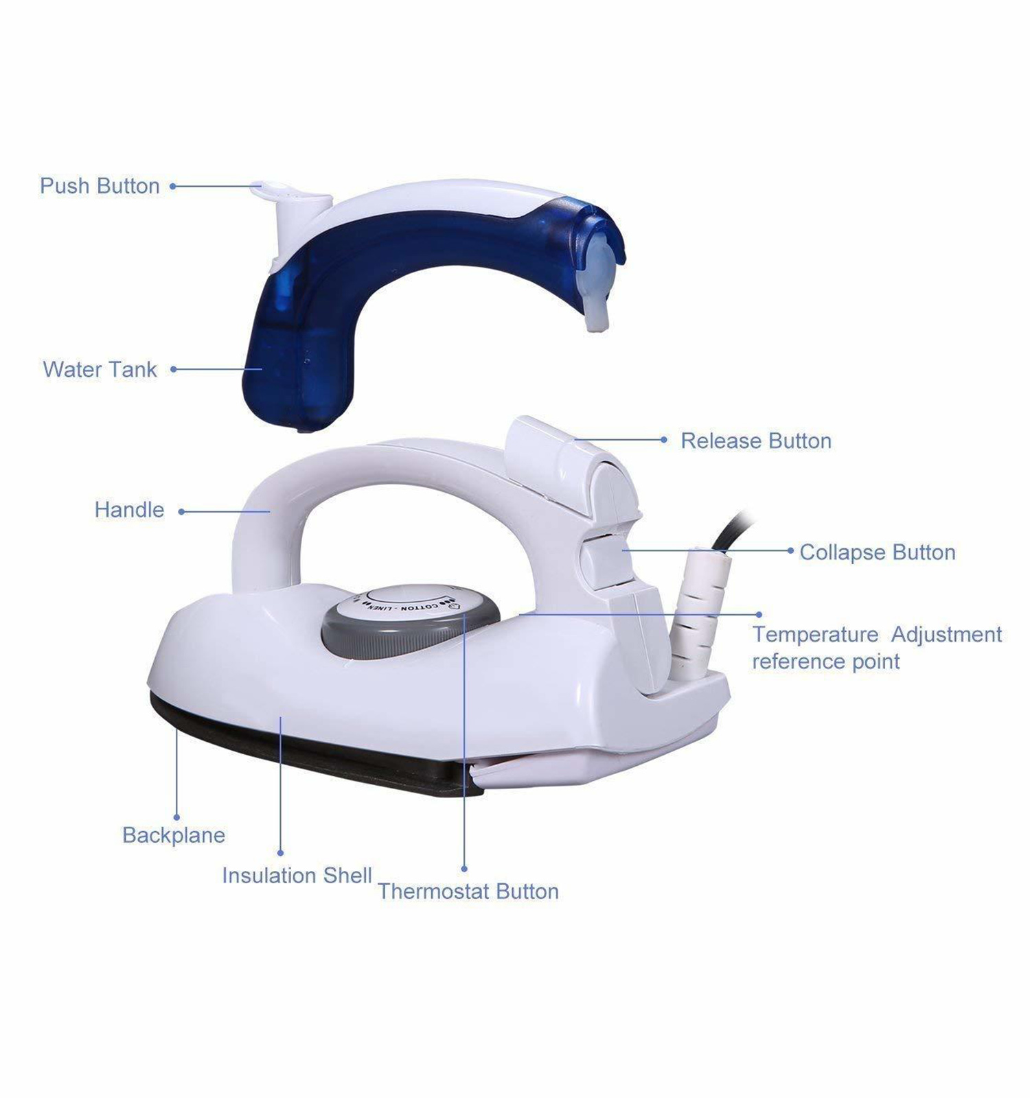 اتو مسافرتی تاشو با بدنهای از فلز و پلاستیک مقاوم و کف تفلون نچسب طراحی شده است. این اتو بخار با توان ۸۰۰ وات و ولتاژ ورودی ۲۴۰ ولت، مجهز به مخزن آب ۴۰ میلیلیتری میباشد و دارای قابلیت تنظیم میزان بخاردهی است.
