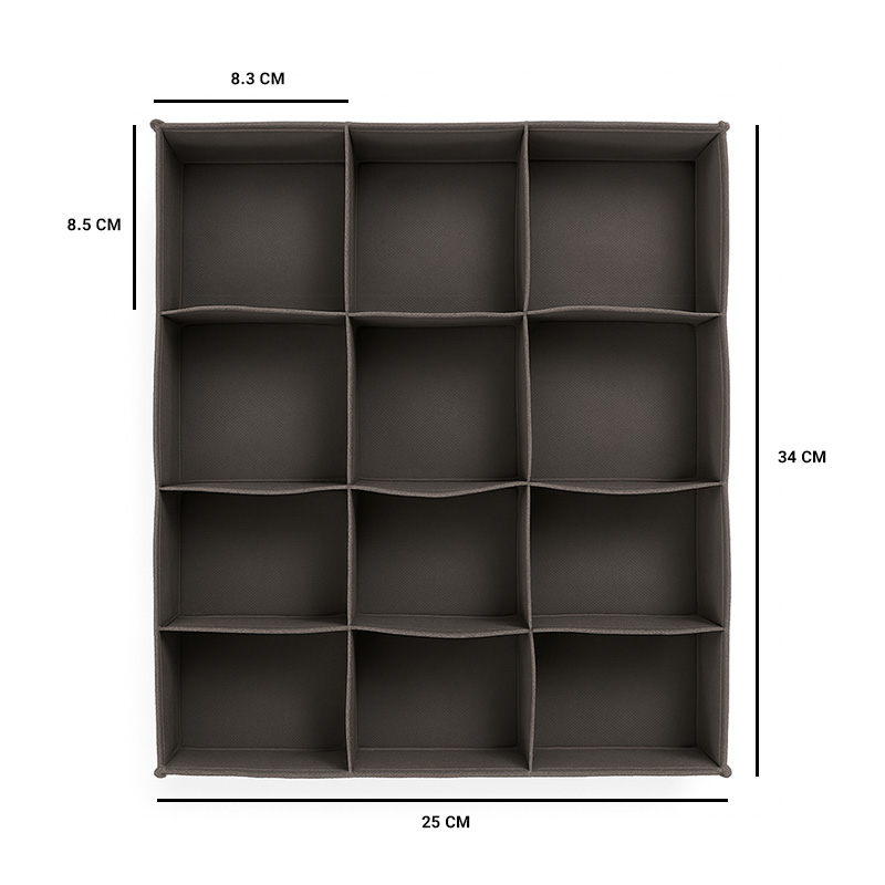 این ارگانایزر فوقالعاده، یک راهکار ساده و در عین حال بسیار کارآمد برای نظمدهی به وسایل شماست. با داشتن ۱۲ جیب مجزا، هر کدام به ابعاد ۸.۵ سانتیمتر، به شما امکان میدهد تا جوراب، کمربند، کروات، لوازم جانبی کوچک، دستمال، لوازم آرایشی و حتی وسایل آشپزخانه را بهراحتی مرتب کنید. دیگر خبری از گشتنهای بیپایان در کشوها یا اتلاف وقت برای پیدا کردن وسایل کوچک نخواهد بود.