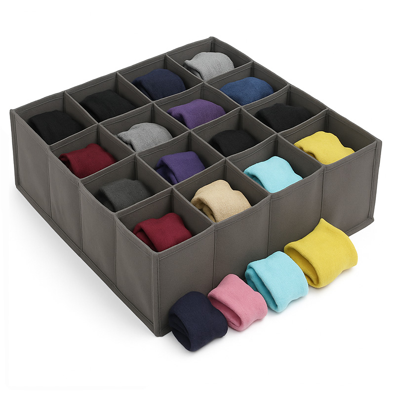 ویژگی مهم دیگه این ارگانایزر، تعداد جیبهای زیادشه. با داشتن ۱۶ خانه مجزا، دیگه لازم نیست وسایل مختلف رو روی هم انباشته کنید. هر وسیله جای مشخص خودش رو داره، بنابراین پیدا کردن هر چیزی تنها در چند ثانیه ممکن میشه.