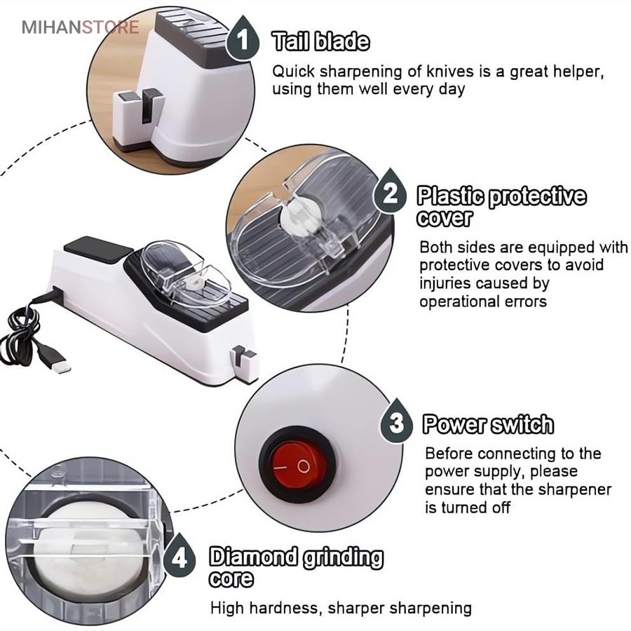 تیغه استیل تیز مناسب برای تمامی چاقوهاهمراه با کابل USB قابل شارژ است و می توانید این محصول فوق العاده را با لپ تاپ یا پاوربانک خود شارژ کنید. می تواند انواع چاقو و قیچی را تیز کند. جنس بدنه محکم و بادوام ساخته شده از پلاستیک مرغوب، مقاوم در برابر ضربه بالا.