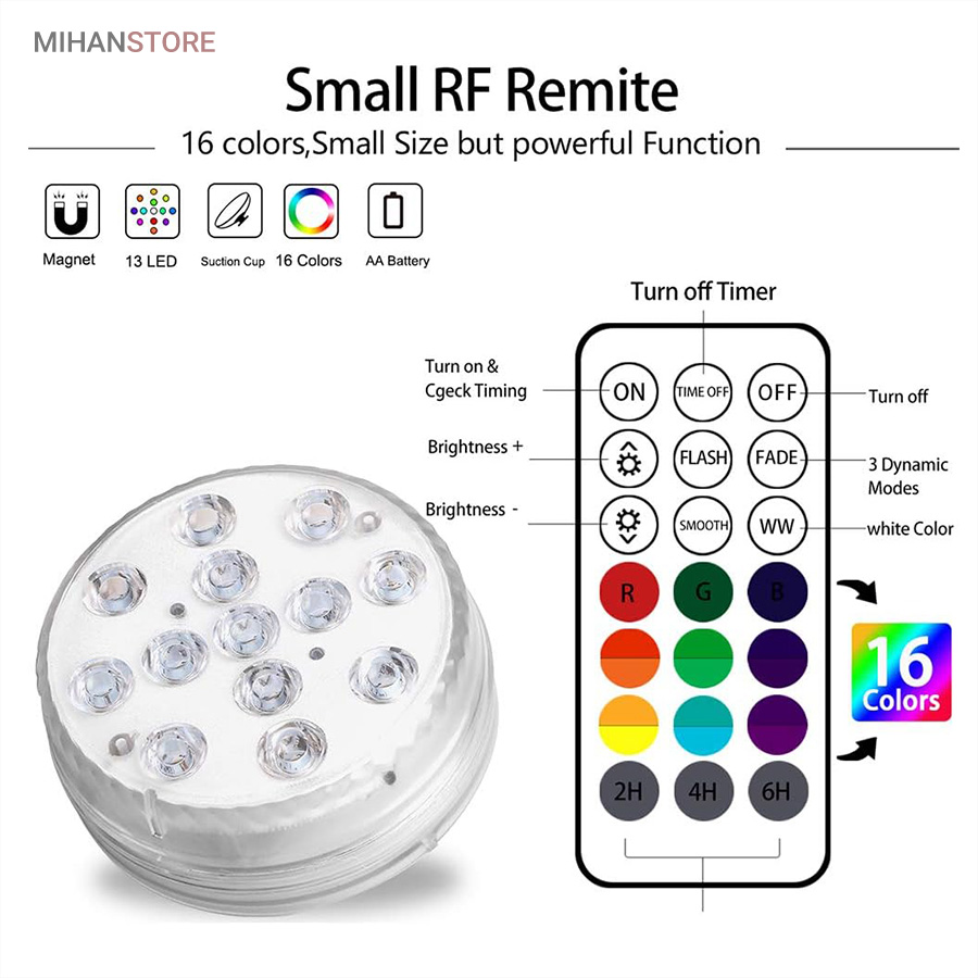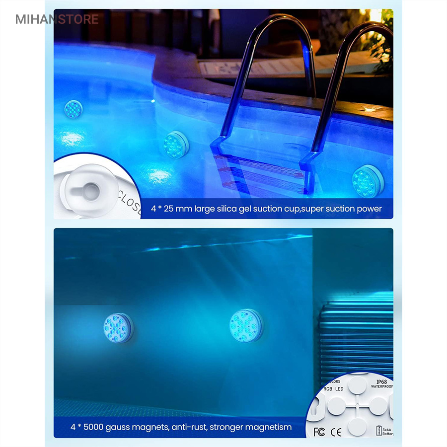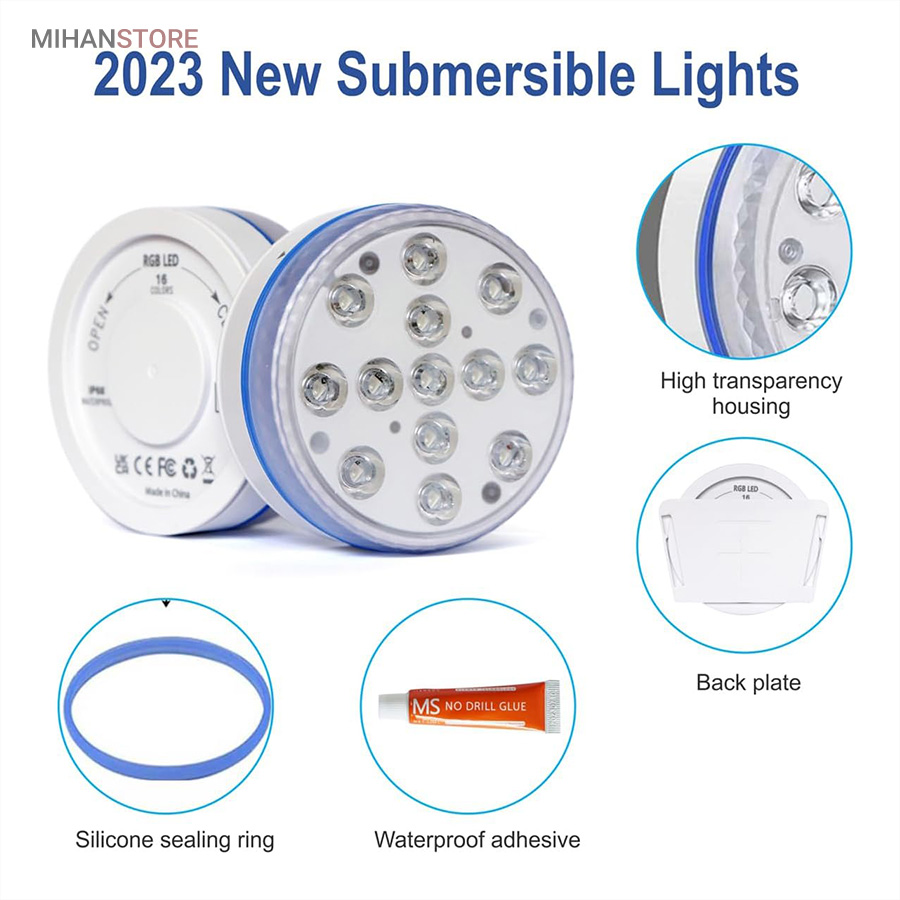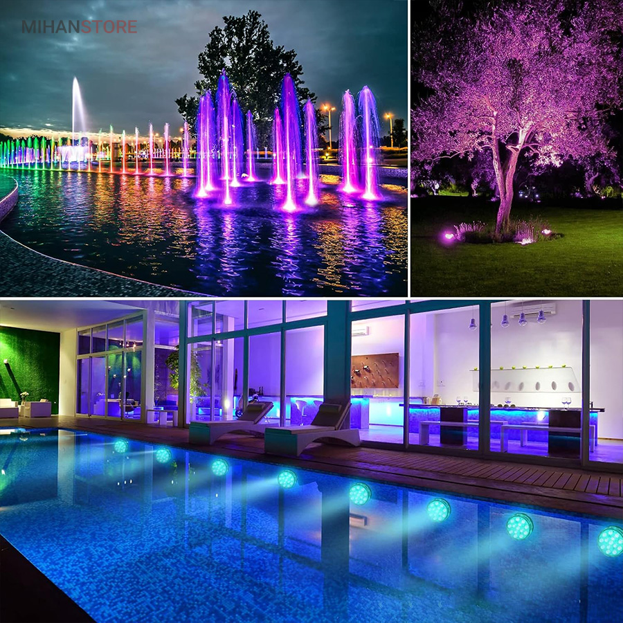 ایده آل برای استخر، وان حمام، حوض، فواره، آبشار، آکواریوم، گلدان، باغ، باغچه، عروسی، مهمانی و غیره. این محصول طراحی ضدآب بسیار قدرتمندی دارد، حلقه مهر و موم خارجی سیلیکاژل مقاوم در برابر حرارت دارای اثر ضد آب بهتری نسبت به سایر چراغ های استخر دارد، از ورود کامل آب جلوگیری می کند و عمر طولانی را تضمین می کند. نمای بیرونی ABS ضخیم شده، محافظت در برابر خوردگی و سفتی را نشان می دهد. دارای ۱۶ رنگ، ۵ سطح روشنایی، ۳ حالت نور و ۳ عملکرد تایمر (۲ ساعت، ۴ ساعت، ۶ ساعت)، شما می توانید آن را به دلخواه تنظیم کنید.