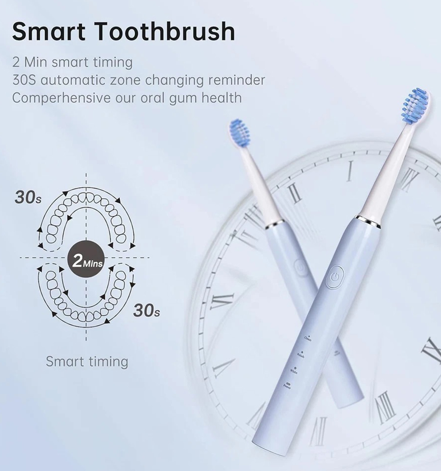 مسواک برقی دو سر با طراحی پیشرفته و موتور قدرتمند، تجربهای متفاوت از مسواکزدن را فراهم میکند. این دستگاه با ۳ حالت عملکردی شامل تمیز کردن، سفید کردن و پولیش، بهطور مؤثر پلاکها و جرمهای روی دندان را از بین میبرد. با ایجاد ۱۶۰۰۰ ویبره در دقیقه و شارژ سریع تنها در ۳ ساعت، کارایی بالایی دارد. استاندارد ضدآب IPX7 استفاده ایمن در محیطهای مرطوب را تضمین میکند. همچنین تایمر هوشمند با خاموشی خودکار بعد از ۲ دقیقه و یادآوری تغییر ناحیه مسواکزدن هر ۳۰ ثانیه، به بهبود بهداشت دهان و دندان کمک میکند.