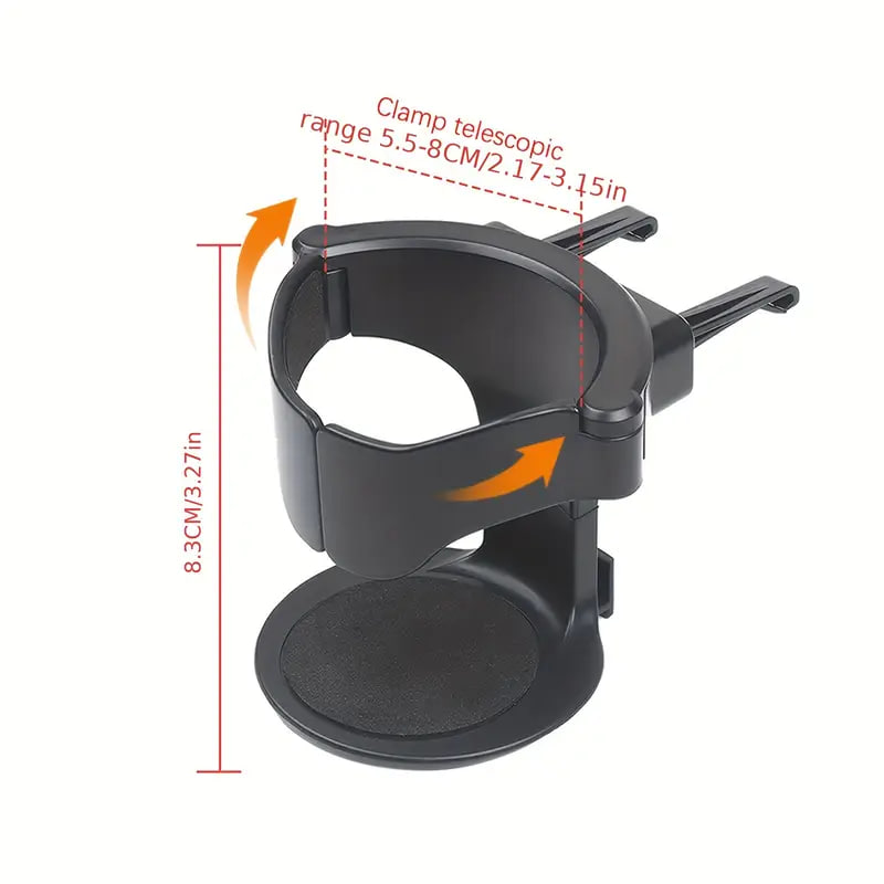 جا لیوانی از مواد کاملاً جدید ABS و بالشتک ساخته شده است تا صدا و لرزش را در حین رانندگی کاهش دهد. طول دسته پایه را می توان با توجه به تمایل داشبورد تنظیم کرد. اطمینان حاصل کنید که نگهدارنده را می توان صاف و محکم قرار داد. این محصول مناسب برای خودروهایی که شیارهای تهویه مطبوع آنها افقی می باشد قابل استفاده است.