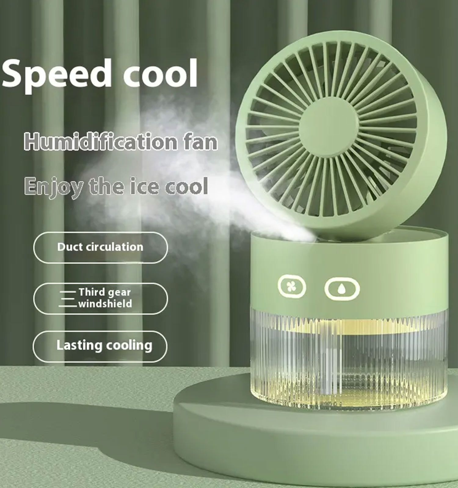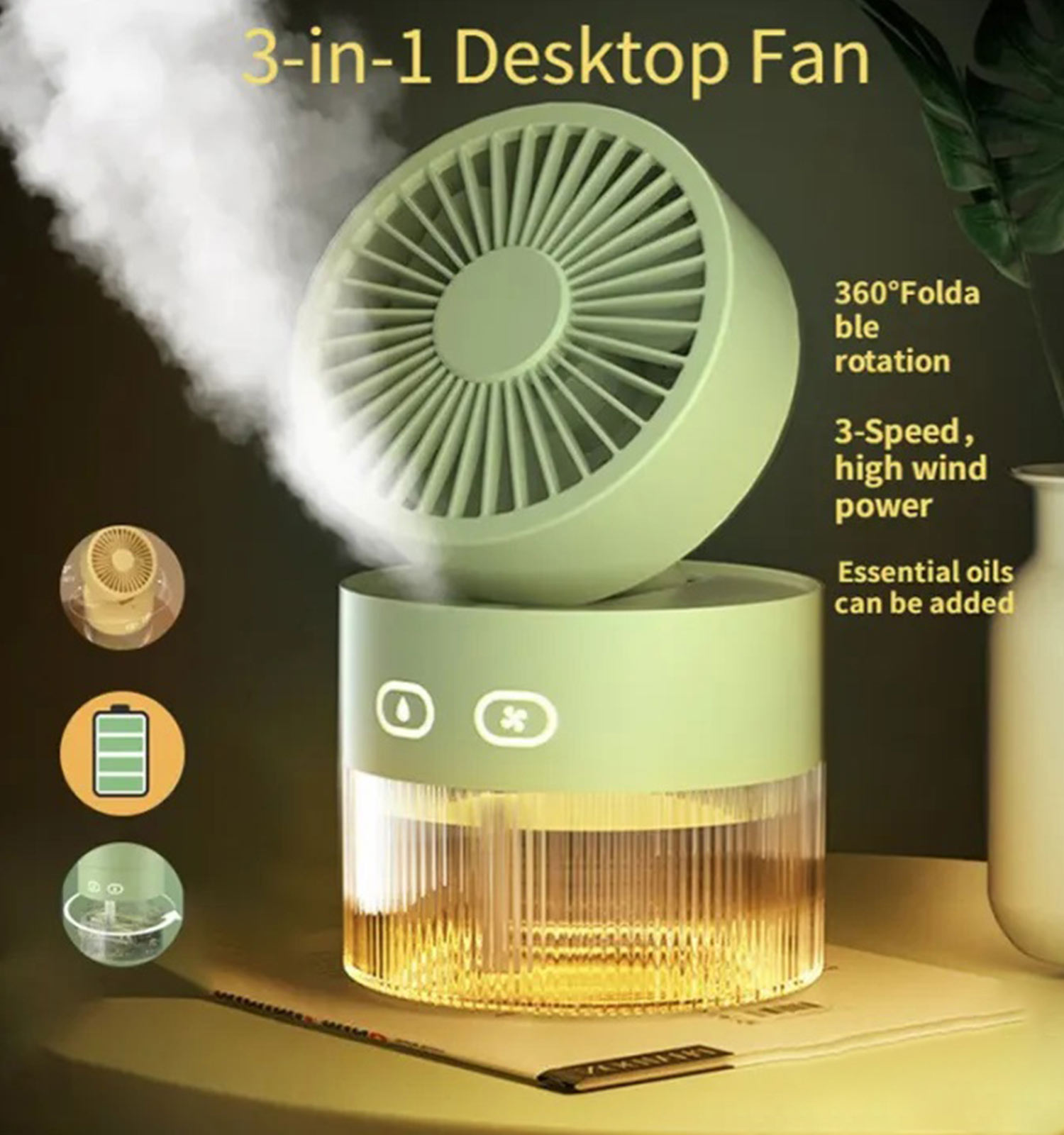 قابلیت پاشش مه سرد و عملکرد بیصدا، آن را برای فضاهای آرام و استراحت مناسب کرده است. پنکه قابلیت چرخش ۳۶۰ درجه دارد و با سه سرعت قابل تنظیم (کم، متوسط و زیاد) امکان تنظیم شدت باد را به دلخواه شما فراهم میسازد. شارژ از طریق درگاه USB انجام میشود و چراغ تعبیهشده در قسمت مخزن، جلوهای زیبا و کاربردی به آن بخشیده است.
