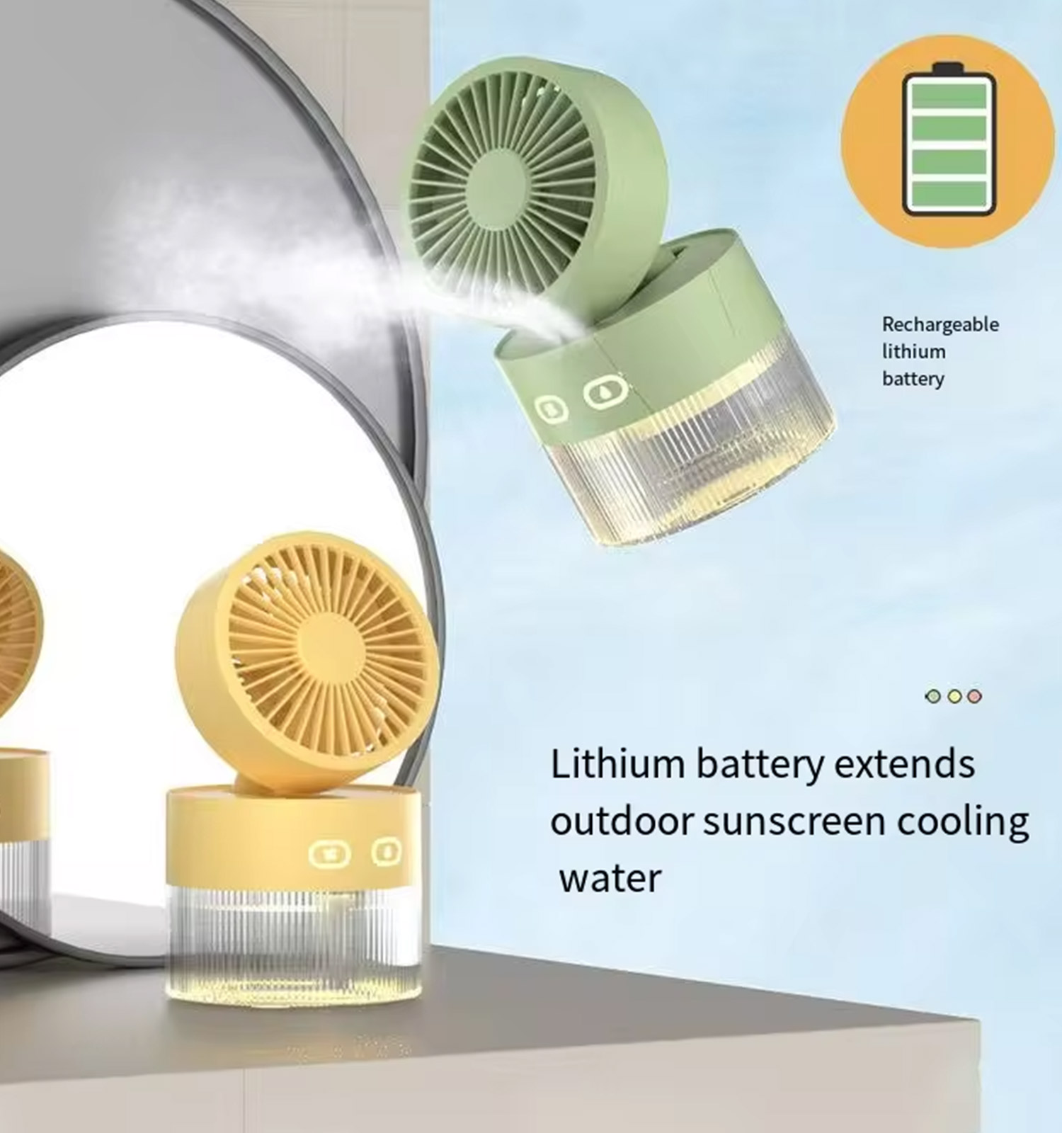پنکه مهپاش شارژی با طراحی کاربردی و بدنهای از پلاستیک مقاوم، گزینهای عالی برای خنککردن در روزهای گرم تابستان است. این دستگاه دارای مخزن آب با ظرفیت ۳۵۰ میلیلیتر و باتری قابل شارژ ۱۵۰۰ میلیآمپر ساعتی است که امکان استفاده در هر مکان را بدون نیاز به برق مستقیم فراهم میکند.