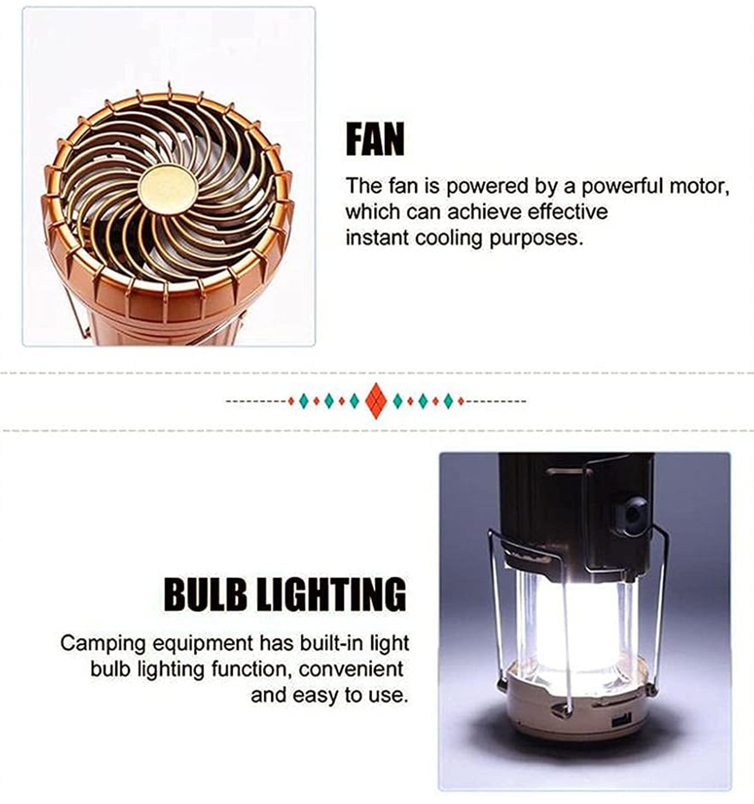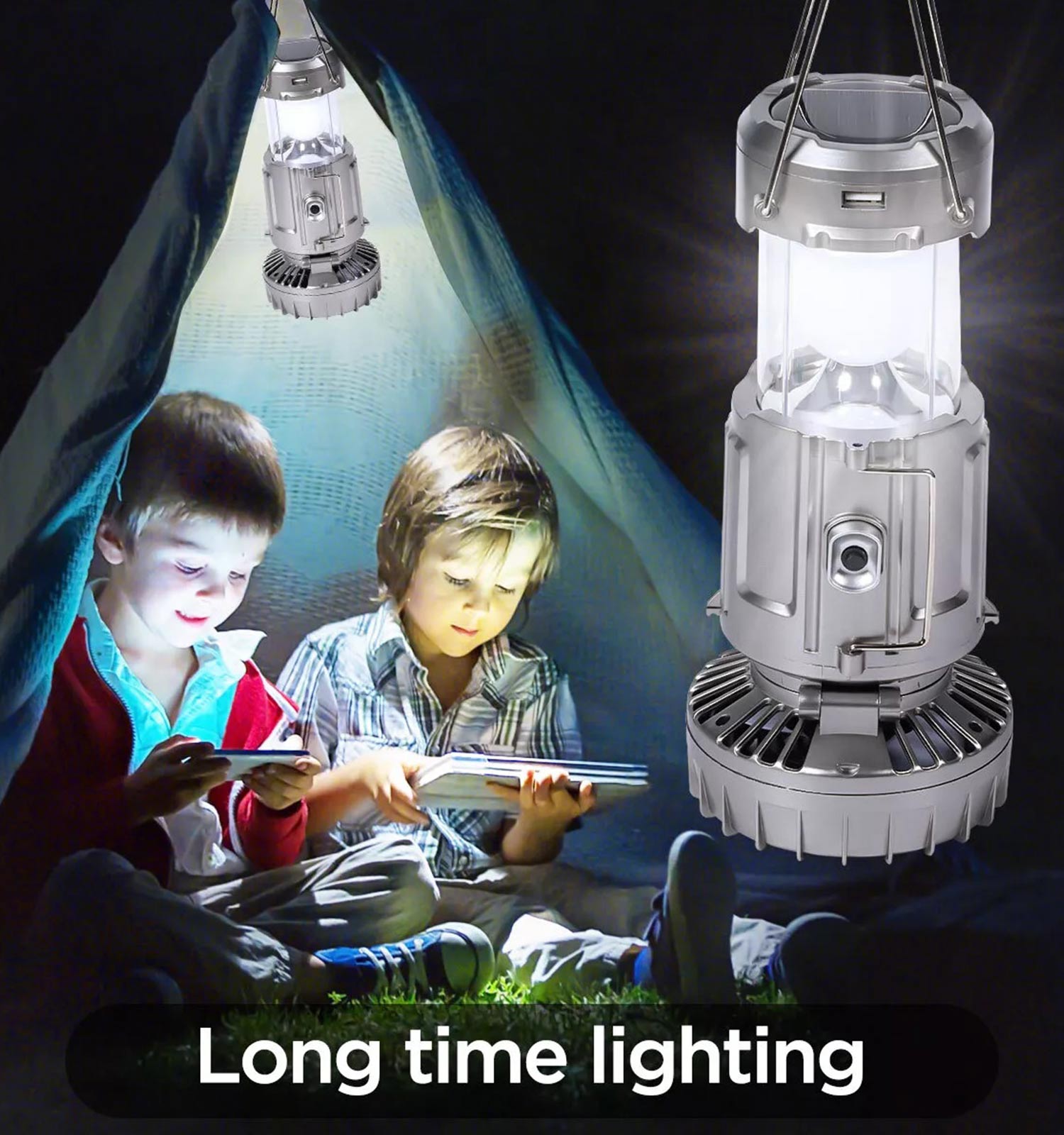چراغ فانوسی پنکهدار با بدنه پلاستیک مقاوم، یک وسیله چندکاره و کاربردی برای سفر، کمپینگ و مواقع اضطراری است. این محصول با باتری داخلی و امکان شارژ از طریق کابل USB، پنل خورشیدی یا برق مستقیم شهری، انعطاف بالایی در تأمین انرژی دارد. مجهز به نور مهتابی و پنکه قدرتمند برای خنکسازی، همچنین قابلیت استفاده به عنوان پاوربانک برای شارژ دستگاههای دیگر. دستههای تاشو آن امکان آویختن در چادر یا حمل آسان را فراهم میکند.